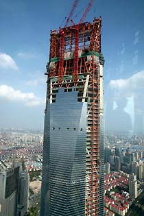 The building would cost a total of 125 billion Japanese yen, or 8.17 billion RMB, according to Minoru Mori, president of Mori Building Co. Ltd, a major investor in the project. The skyscraper, which usurps the nearby 421-meter Jinmao Tower as the tallest on the Chinese mainland, will be finished and put into commercial use next spring. The most distinctive feature in the building's design is a trapezoidal hole at the top. There will be an observation deck on the 100th floor, 472 meters up, making it the world's highest public observation platform. The tower will house 70 floors of office space designed to accommodate 12,000 people, with a hotel, restaurants, conference centers and shopping malls. The rental has been initially set at three U.S. dollars per square meter a day, the highest rent in the city. Japan's Mizuho Corporate Bank and Sumitomo Mitsui Banking Corporation have signed leases. Other potential tenants include JPMorgan and Lehman Brothers. Construction began in 1997, but was soon suspended due to the Asian financial crisis. The project was resumed in 2004. Burj Dubai, a skyscraper in the United Arab Emirates (UAE), is the world's tallest free-standing structure at a height of 555.3 meters, surpassing the 508-meter Taipei 101 in Taiwan. |