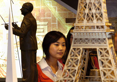 A woman visits an exhibition on World Expo at a library in Nanjing, East China's Jiangsu Province on September 16. The exhibition provides information about the 2010 World Expo in Shanghai, the planning and preparation for it,and the history of World Expo. [Xinhua]