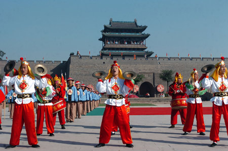 Dancers perform during the opening ceremony of the 2007 China Pingyaop International Photography Festival (PIP) held in Pingyao County of North China's Shanxi Province, Sept. 19, 2007. More than 300 photographers from 47 countries and regions and 20 curators of photography attended the event which lasts from Sept. 19 to 25. The theme of this year is "Cooperation & Win-Win". Over 10,000 photos will be displayed. The ancient city of Pingyao was listed as one of the World Cultural Heritage by the UNESCO in 1997 and it has always been the host city of the PIP since the PIP was founded in 2001. [Xinhua]