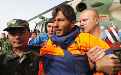 Rescuers has sent the man by helicopter to Regional People's Hospital of Hotan, Xinjiang Uygur Autonomous Region, for treatment by Saturday noon. Initial check-up shows that Pautov's health condition is stable with blood pressure, pulse and heartbeat in normal range, according to doctors. He said he had only drunk river water and had not eaten any food in the 25 days since his boat capsized in the river on August 28. Pautov was found hours after finding the first survivor from a group of six Russians who went missing on a rafting trip a month ago. During the past days, although Pautov could hear and see the helicopter, but his ground gesture of waving hands was too weak to be seen by rescuers on the helicopter. At 6 pm Friday, the man saw the helicopter on the opposite band of a river where he was staying around. He tried to swim across the river and walked to the helicopter. Unfortunately, the helicopter took off while he was about 500 meters away. Pautov was in the sight of ground rescuers at 8 pm, according to Zhang Shaoyun, deputy head of the headquarters. Rescuers enwrapped the man with dry cloths, washed him clean and provided him liquid nutrition before taking him to hospital. The rescuers informed the rescue headquarters in Hotan by satellite phone, saying the man would be taken to Hotan by helicopter on Saturday as it was too late for the helicopter to fly. The first survivor Alexander Zverev, 35, was rescued at about 10:30 am Friday on the banks of the upper reaches of the Yurungkax River. He also had only drunk river water and had not eaten any food in the 25 days. Doctors said Zverev, weighing 58 kg, a full 24 kg less than a month ago, was suffering from dehydration and malnutrition. Zverev said Sergey Chernik, 47, and Ivan Chernik, 25, who were father and son, fell into the river and drowned on August 24, four days after they started rafting. He and the remaining three members of the group placed the bodies under one of the catamarans on the river bank but were forced to continue rafting in the other boat after failing to find a way out by land. However, their boat capsized on August 28. Zverev said two members of the team were engulfed in whirlpools but he managed to swim to the bank and survived. Zverev had thought they were dead - the body of a third man, Vladimir Smetannikov, 25, has already been found. The rescuers have talked with the two survived men, seeking for further information about Dmitry Tishchenko, the last missing Russian tourist. According to clues from Zverev and Pautov, focus of searching effort is to be carried out at the river's lower reaches. |