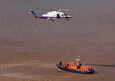 | A helicopter closes in on a rescue ship to tranfer injured passengers during a search and rescue exercise along the Yangtze River in Wanzhou, a port city in Southwest China's Chongqing Municipality Saturday, September 22, 2007. [Xinhua] |