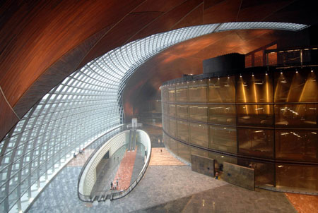 A corner of the National Grand Theater. The Theater will have its first trial show on September 25. [Xinhua]