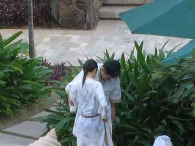 Yang Zhenning, the first Chinese American Nobel Prize laureate, together with his young wife Weng Fan, are seen near a pool in photos posted recently on many bulletin boards. [chinaview.cn]
