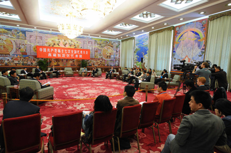 Media staff cover a discussion session of the 17th National Congress of the Communist Party of China in Beijing on October 16, 2007. The 17th Party congress opened in Beijing on Monday, 2007. [Xinhua]