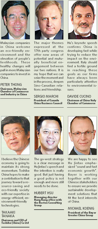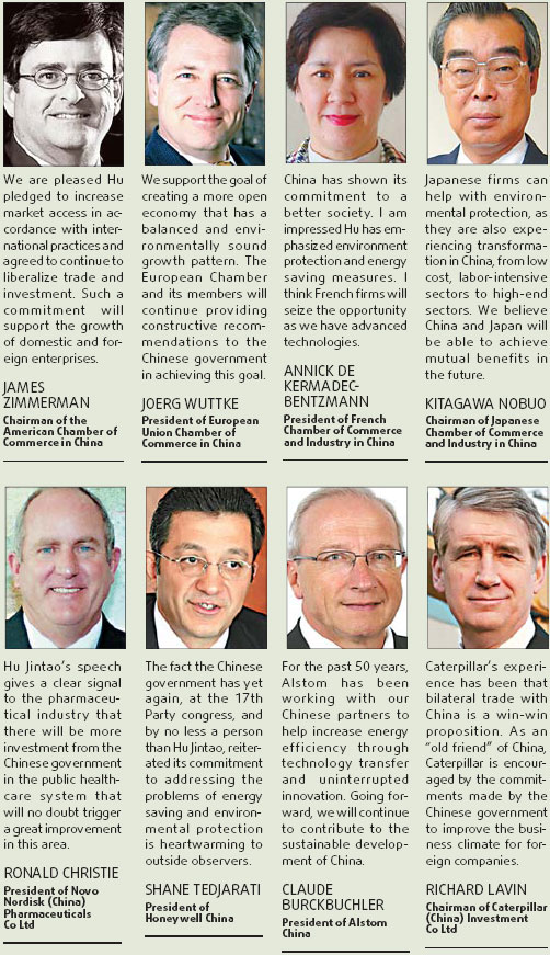 The speeches at the Party congress, the most important gathering in the world's largest and fastest growing market, have assured the international business community that China remains a safe bet for investment.
