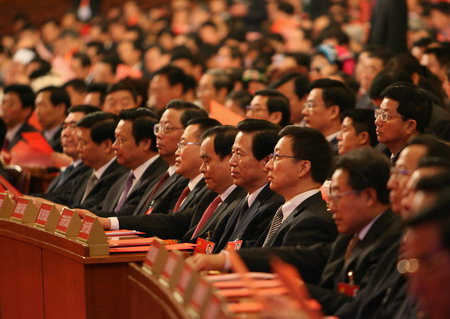 Delegates wait to cast their votes at the closing session of the 17th National Congress of the Communist Party of China in the Great Hall of the People in Beijing October 21, 2007. The Closing Session was started at 9:00 am on Sunday, at which a new CPC Central Committee and the Central Commission for Discipline Inspection would be elected. [Xinhua]