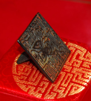 Updated: 2007-10-31 11:14 ![]() The seal of King of Yelang is on display at a press conference in Guiyang, Southwest China's Guizhou Province, October 30, 2007. Yelang was an ancient minor kingdom in present day Guizhou Province during the Han Dynasty (206 BC–220 AD). The seal was made public by a Miao ethnic man who claimed to be the 75th generation descendant of the king. [newsphoto]