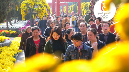 Tourists come to Longting Park to enjoy chrysanthemums in Kaifeng, November 3, 2007. [newsphoto]