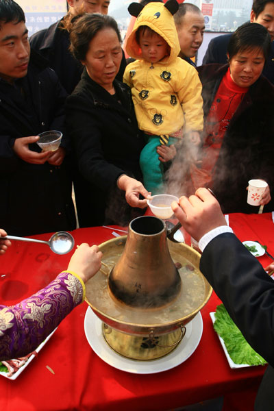 People taste food during the Lanzhou Food Festival, November 6, 2007. [newsphoto]