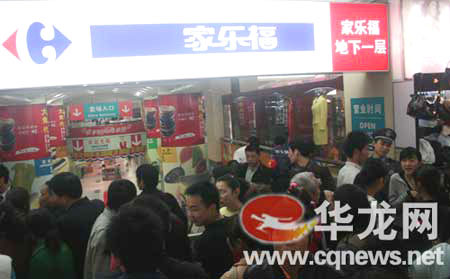 Three people died and 31 were injured during a Saturday morning shopping stampede at a Carrefour supermarket in Chongqing, southwestern China. The supermarket was closed after the accident, reports on the People's Daily website said. A sale on bottled cooking oil caused the stampede. The supermarket lowered the oil's price to 39.9 yuan from 51.4 yuan to celebrate the store's 10th anniversary. A large crowd had waited outside the store from 4 am until the supermarket opened at 8:40 am. The shoppers rushed in all at once, causing the deaths and injuries. Investigation is underway.