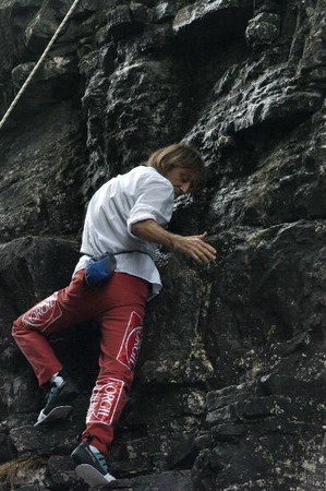 French climber Alain Robert, the famed "Spiderman" , climbs Tianmen mountain in Zhangjiajie, Central China's Hunan Province, November 18, 2007. [Xinhua]