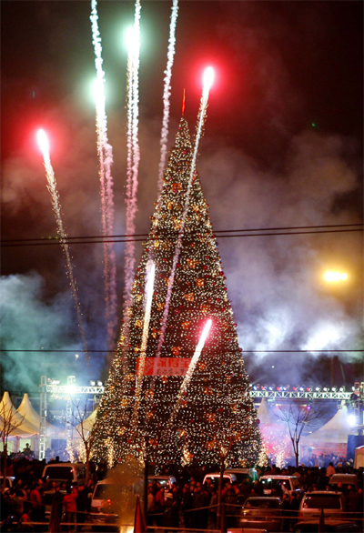 A photo taken on December 3, 2007 shows a Christmas tree in Beijing, capital of China. The Christmas tree, which was erected at Jiadebao square in Beijing, is 23 meters high and 10 meters in diameter. Currently the Christmas tree is the largest one in the capital of China. [newsphoto]