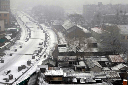 Snow is seen on the roofs of buildings in Beijing, December 10, 2007. [Xinhua]