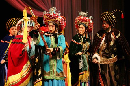 Updated: 2007-12-12 11:04 ![]() Traditional opera actors perform during a professional theatre contest in Guiyang, Southwest China's Guizhou Province, December 10, 2007. [Xinhua]