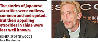 Updated: 2007-12-13 07:11 The Nanjing Massacre, in which an estimated 300,000 Chinese civilians and soldiers were killed and tens of thousands of women were raped, is one of the biggest atrocities of World War II. To coincide with the 70th anniversary of the massacre, filmmakers across the world are shining the spotlight on this dark chapter of history.