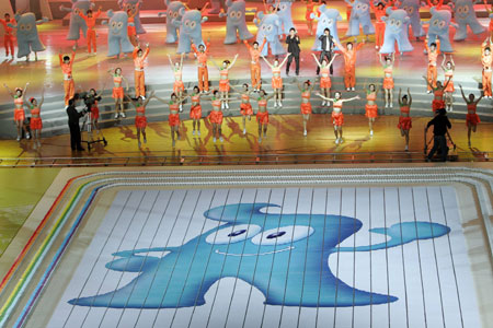 The mascot of the World Expo 2010 Shanghai "Haibao" is unveiled during a promotional event in Shanghai, December 18, 2007. Over 26,000 entries were received for the mascot design competition, with competitors' ages ranging from 3 to 83, the organisers said on Tuesday. [Agencies]