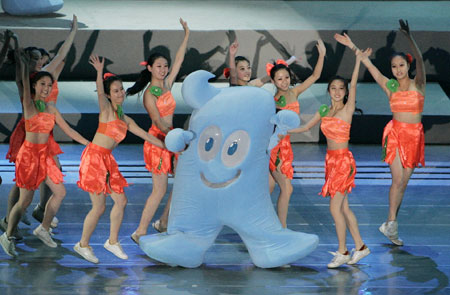 The mascot of the World Expo 2010 Shanghai "Haibao" is unveiled during a promotional event in Shanghai, December 18, 2007. Over 26,000 entries were received for the mascot design competition, with competitors' ages ranging from 3 to 83. [Agencies]