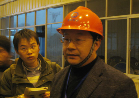 Xiao Jiangwei, administrative director of Xinhua Metal answers questions from the media at the Xinhua Metal production workshop, December 17, 2007. [chinadaily.com.cn]