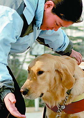 "He is like my eyes," Ping gushed yesterday. "It is like I can see things again." "Lucky" is a 19-month-old golden retriever, one of the first five guide dogs that recently graduated from a training center affiliated to Dalian Medical University in Liaoning. Ping, who won China's first gold in long jump at the 1984 New York Paralympic Games, was chosen as one of the first recipients of the new seeing dogs; and Lucky has been assigned to her for the next 10 years. But after having Lucky for only four weeks, Ping realized that she cannot fully take advantage of her companion's abilities. Regulations in Beijing restrict ownership of large dogs; and dogs are barred from entering public places. In addition, the city does not recognize guide dogs but Ping said police informed her that Lucky could be taken outside, but in a self-defeating compromise - only in the company of an able-bodied person. She has been advised to go to Beijing's animal husbandry and veterinary bureau to get Lucky recognized as a guide dog, which would then enable police registration without charge. Ping said she hopes regulations are amended so that visually impaired people and their seeing dogs are exempted from the restriction. "We were not allowed to enter subway stations, buses and sometimes even taxis," Ping, a torchbearer for the 2008 Olympic Games, said. Setbacks aside, Ping has already established good rapport with her new friend. During her first walk with Lucky, the dog helped guide her down stairs, one of the more difficult challenges for a blind person. "At that moment, I virtually burst into tears," Ping said. "Lucky reduces the risk of injuring myself when I go out." Their relationship began with Lucky's trainer, Song Yali, familiarizing Ping with certain commands. "He never bites anyone," said Song, who stayed with Ping and the gold-furred Lucky for four weeks so that the transition was smooth. "They are one of the nicest breeds in the world." Lucky guides Ping across roads, not by recognizing the color of traffic lights, but by watching traffic flows. Lucky recognized the word "Gongyuan", which means park, after being shown it only a couple of times. Golden retrievers are considered one of the best breeds for guide dogs because of their intelligence and friendly disposition. The Dalian Medical University Center, where Lucky was trained, was established two years ago. It is now training some 30 canines for visually impaired athletes to raise awareness about facilities for the blind. It takes eight months and costs about 100,000 yuan ($13,500) to train a guide dog. Ping's first exposure to guide dogs was at the New York Paralympics, where many blind athletes from European countries and the United States had their own seeing dogs. "It has taken more than 20 years for China to have guide dogs," Ping said wistfully. About 12.3 million people in the country suffer from some form of visual impairment, including total blindness. Some blind people work as masseurs, and Ping herself runs a massage clinic. The first training schools were established in Germany during World War I to help returning veterans blinded in combat. |
