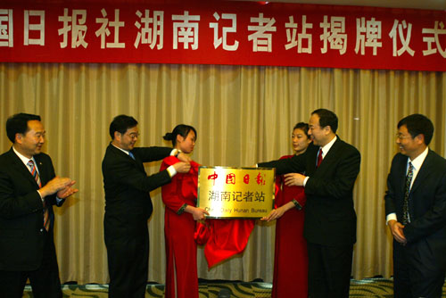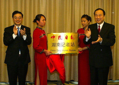 Friday, at the opening ceremony of China Daily’s Hunan Bureau, Zhou, the provincial governor, said:"I am a loyal reader of China Daily, and I surf on China Daily website everyday." He said he believes that the national English-language newspaper could bridge the province, where the booming economy and tremendous growth potential are attracting more multinational companies, and the rest of the world. The Hunan Bureau marks the first step of China Daily’s new endeavor to expand local coverage. According to Zhu Ling, editor-in-chief of China Daily, the newspaper is also launching another seven local bureaus in coming months, such as those in Chongqing Municipality, Hubei Province and Xinjiang Uygur Autonomous Region. "Increasing local coverage is a strategic part of China Daily's future development," Zhu said.