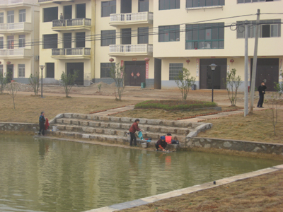 A photo taken on December 22, 2007 shows villagers of Fengshu Village washing clothes in the newly-built 2700-square meter pool.[chinadaily.com.cn]