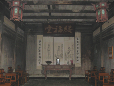The Worshipping for Good Fortune Hall of Luotian Village. Situated in the southeastern part of Anyi County of Nanchang City, East China's Jiangxi Province, the ancient village group of Anyi is composed of three natural villages: Luotian, Shuinan and Jiangtai. They have preserved so far over 100 ancient residences from Ming and Qing dynasties with ancient streets and well. They display the primitive and elegant architectural art and are good models of Gan (Jiangxi) culture. [chinadaily.com.cn]