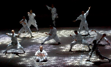 Martial monks from the Shaolin Temple perform the stage show named Shaolin Martial Spirit in Zhengzhou, Central China's Henan Province, December 23, 2007. [Xinhua]