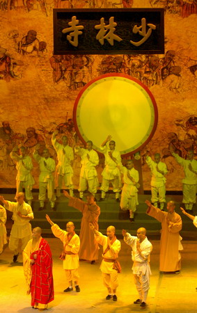 Updated: 2007-12-24 15:03 ![]() Martial monks from the Shaolin Temple perform the stage show named Shaolin Martial Spirit in Zhengzhou, Central China's Henan Province, December 23, 2007. [Xinhua]