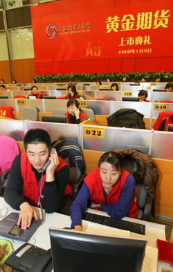 A photo taken on January 9, 2008 shows traders work at the Shanghai Futures Exchange in Shanghai. [Xinhua]