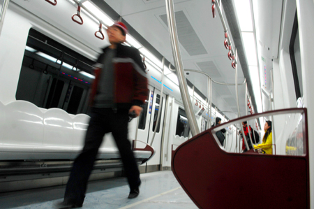 The interior of a new train of Beijing subway line 10. [Xinhua]