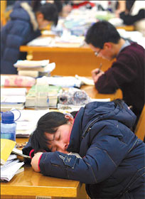 The Ministry of Education (MOE) said Thursday that 1.2 million people have registered for the exam this year, down 6 percent on last year. Education experts have attributed the decline to the falling number of employment opportunities for fresh graduates with master's degrees or doctorates. "Social values have changed now as employers do not focus solely on educational qualifications but on real ability," Mao Zuhuan, a professor from the Beijing University of Science and Technology, said. Jiang Baojin, CEO of a private company in Nanjing, Jiangsu province, said his company employs people who can provide the most benefits for the least expense. "If an undergraduate and a graduate have similar experience we will choose the undergraduate to save money," Jiang said. In addition, some colleges and universities have introduced a pilot reform that removes free education for some postgraduates. Sichuan University, on the other hand, has said it will implement a scholarship scheme for postgraduate studies this year. MOE spokesman Wang Xuming said people have previously "taken for granted" the idea that postgraduate students have brighter employment prospects than others. "Large numbers of undergraduates chose postgraduate study to delay entering the fierce job market," he said. However, many employers are now looking for people with more practical experience, he said. Some universities have strengthened personal development counseling and employment guidance in recent years, asking students to learn more work-related skills before choosing further education. Signs of a cooling down of attendance for the postgraduate entrance exam began to emerge last year when 1.28 million people registered, just 7,000 more than in 2006. Students also now have more opportunities to continue their education abroad. Du Ran, a third-year undergraduate studying at the Communication University of China, said: "The postgraduate entrance exam is too difficult and the competition is too fierce. "So I am preparing to go to Hong Kong to study for my master's degree." |