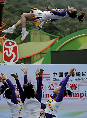Cheerleaders from Japan perform at a competition in Hong Kong on January 19, 2008. [Xinhua]