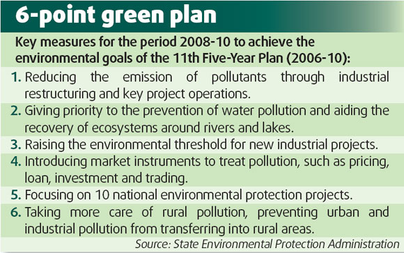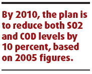 By 2010, the plan is to reduce both SO2 and COD levels by 10 percent, based on 2005 figures.