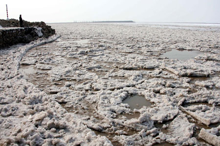 Ice drift is seen on the Yongji section of the Yellow River in Shanxi Province of North China January 25, 2008. Recent low temperatures freezed the river and local river authority said more ice drift was expected during the next few days. [Xinhua]