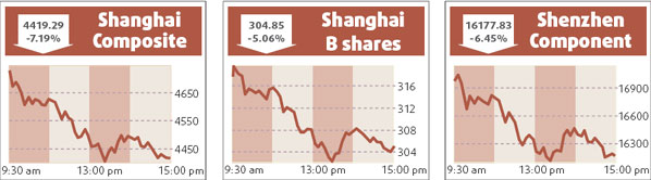 CITIC Securities Co, Asia's biggest brokerage, declined 10 percent in Shanghai to close at 68.42 yuan. The company's shares have lost 41 percent from their record of 116.52 yuan on Nov 2. About half of brokerages' revenue is made by trading stocks for clients. They made record profits last year as the CSI 300 Index almost tripled, fueled by 573 million investment accounts opened in the first 11 months of 2007. Haitong Securities Co declined by 10 percent to 44.79 yuan. China's stock exchanges don't allow a company's shares to fall or rise more than 10 percent from the previous day's close. Other brokerages that dropped by the daily limit included Hong Yuan Securities Co, to 31.79 yuan; Northeast Securities Co, to 42.74 yuan; Guoyuan Securities Co, to 33.16 yuan; and Changjiang Securities Co, to 27.52 yuan. Sinolink Securities Co, which trades under the name of Chengdu Urban Construction Investment & Development Co after taking over the company, closed 10 percent lower at 50.99 yuan. Agencies (China Daily 01/29/2008 page15) |