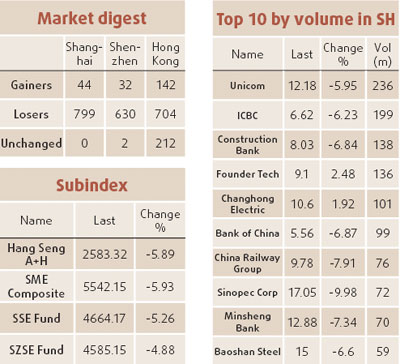 Insurers, brokers fall by 10% daily limit(China Daily)