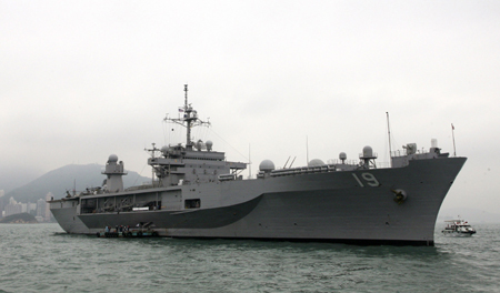 USS Blue Ridge, flagship of the US Navy's Seventh Fleet, is seen in Hong Kong waters January 28, 2008. [Agencies]