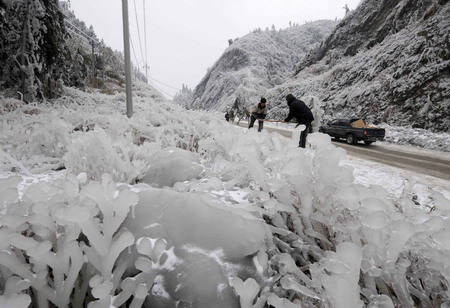 Updated: 2008-02-01 00:29 ![]() ![]() A truck carrying fruit moves on the road in Southwest China' Guangxi Zhuang Autonomous Region, heading for snow-hit Hunan Province, January 31, 2008. [Xinhua]