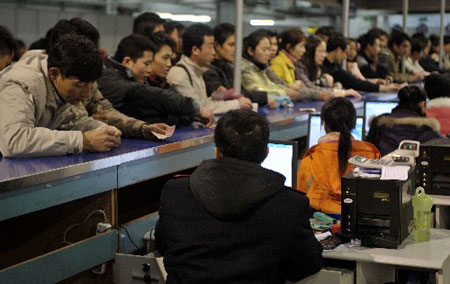 Passengers refund their railway tickets in Guangzhou. [Xinhua]