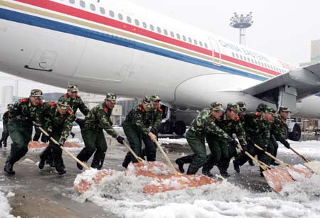 Early preparation should be made to guarantee smooth transportation in the face of another round of precipitation and snow in south and southwest China in the next 10 days, it warned. China is expected to see another peak of railway traffic since Feb. 11, the six day of the Chinese Lunar New Year holiday, said the Ministry of Railway on Sunday. Post-Spring Festival railway traffic peak saw more than five million passengers daily last year and we expect more passenger flow this year, predicted the ministry. Highway transportation in many areas hampered by icy and snowy weather has returned to normalcy. About 28.1 million people have been carried by expressways and trunk highways on Sunday, up 6.05 million over the previous day. Some 4,291 flights carrying 535,000 passengers took off on Sunday, 23,000 more than a day earlier. |