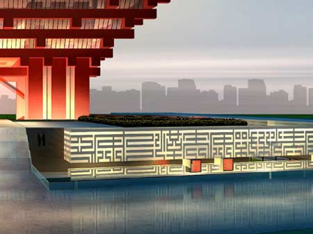 The outside walls are shownwith a special type of Chinese calligraphy for China's pavilion at the 2010 World Expo February 18, 2008. [Xinhua]
