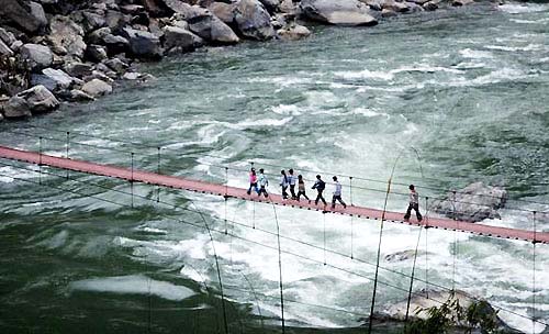 The 170-meter steel bridge was built over a section of Nujiang River, in the poverty-stricken Lisu Autonomous Prefecture.