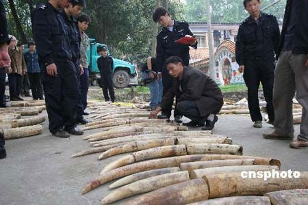 Forest police of Guangxi Zhuang Autonomous Region capture over 790 kilograms ivory worth 36 million yuan March 19, 2008. [cnsphoto]