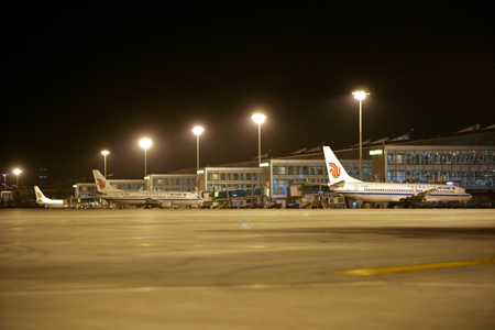 Planes sit on the tarmac of Terminal 3 at the Beijing Capital International Airport on March 26, 2008. Several planes began to move to the terminal late on March 25. The airport opened its new Terminal 3 on February 29 this year, which is a major expansion project in preparation for the passenger surge during the Olympic Games in August. [Xinhua]