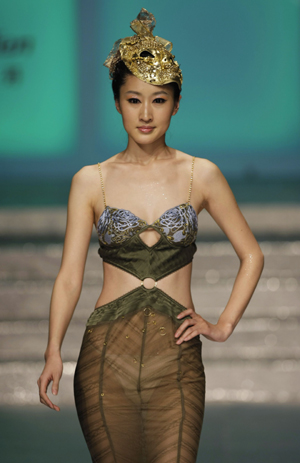 A model presents a creation for Ordifen undergarment elements release at China Fashion Week 2008 in Beijing March 27, 2008. [Agencies]