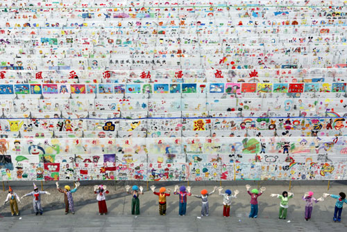 Cartoon paintings, which add up to 10,000 m if placed side by side, are displayed in a square in Hangzhou, capital of East China's Zhejiang Province March 28, 2008. More than 100,000 people, including students from 170 primary and middle schools, drew the cartoons to celebrate the upcoming China International Cartoon Festival to be held in the city. [Xinhua]