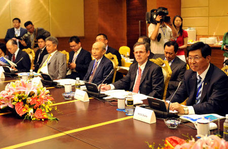 Directors attend the Boao Forum for Asia (BFA) Board of Directors Meeting in Boao, south China's Hainan Province, April 10, 2008. The BFA Board of Directors Meeting was held here Thursday before the BFA Annual Conference which will kick off on April 12. [Xinhua]