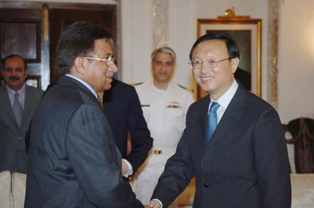 ISLAMABAD -- Pakistani President Pervez Musharraf and Prime Minister Yousuf Raza Gillani met respectively with visiting Chinese Foreign Minister Yang Jiechi on Saturday and reiterated their resolve to improve bilateral ties to a new level.