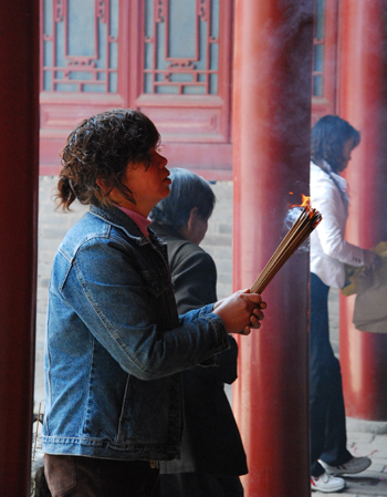 People burn joss sticks for blessings. [Chinadaily.com.cn]