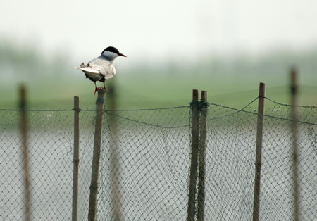 A bird rests on a bamboo pole in a water-reclaimed area around Baiyangdian Lake in northern China's Hebei Province, April 28, 2008. Baiyangdian Lake, located 150km south of Beijing, has seen an improvement in the environment due to fresh water brought in from the Yellow River in January. Some 60 million cubic meters of water was diverted into the lake to ensure Beijing's water supply during the Olympics and improve the capital's ecological environment. [Xinhua]